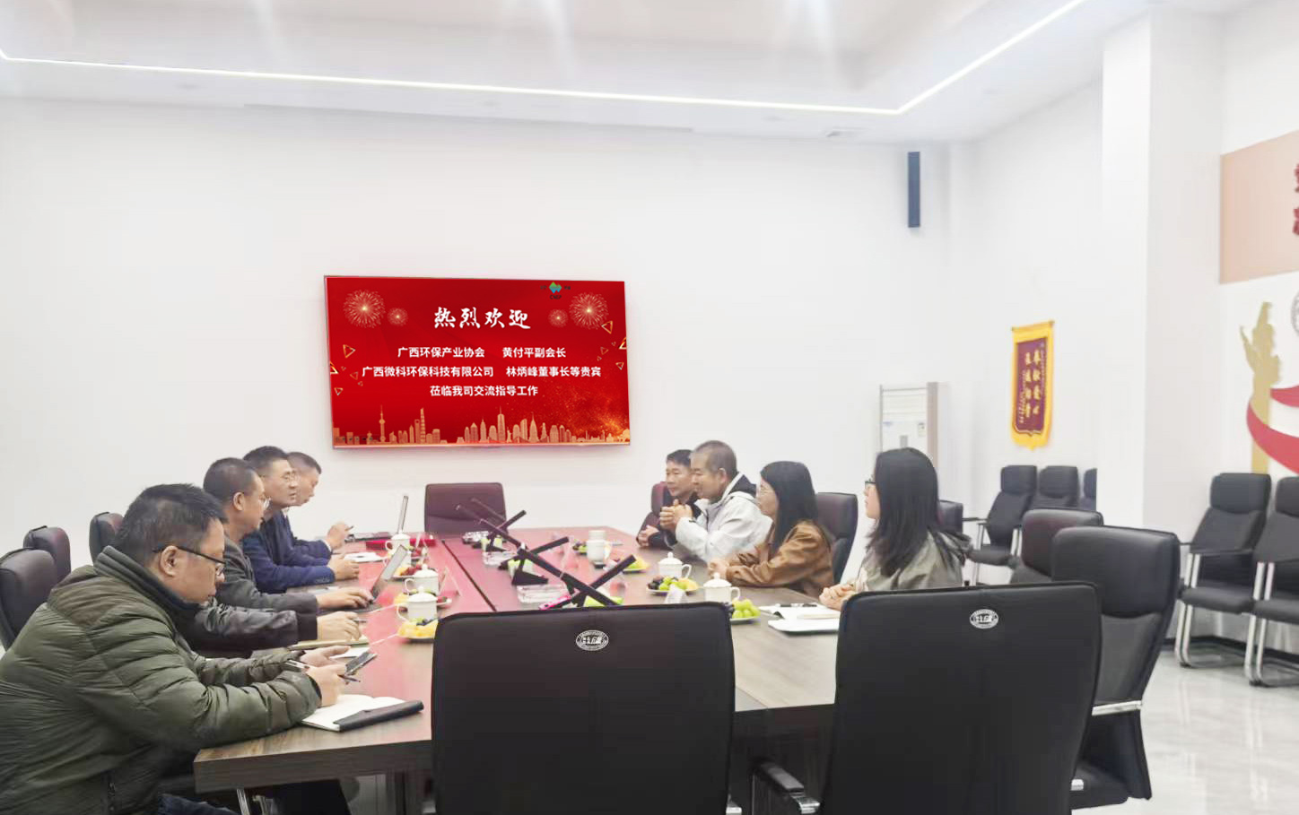? ? ? 參觀結(jié)束后,雙方聚焦行業(yè)痛點(diǎn)與發(fā)展機(jī)遇,召開專題技術(shù)交流會(huì)。邵總首先代表公司對黃付平會(huì)長一行的蒞臨表示熱烈歡迎,隨后詳細(xì)介紹了川寧環(huán)保核心團(tuán)隊(duì)的構(gòu)成、專業(yè)背景及多年來在環(huán)保領(lǐng)域的深耕成果,讓貴賓們進(jìn)一步了解公司的人才優(yōu)勢與發(fā)展底蘊(yùn)。